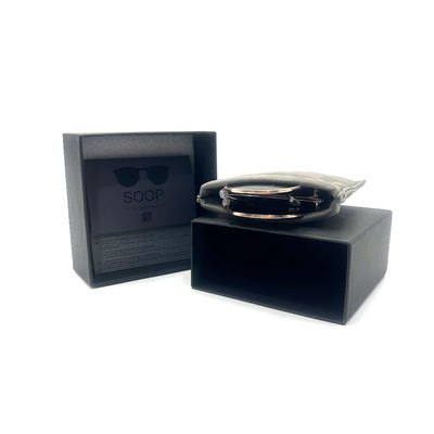 عینک آفتابی فریم فلزی در یک جعبه کارتونی بسته بندی می شود و با پوشش حباب بسته بندی می شود. جعبه سپس در یک کیسه حمل و نقل قرار می گیرد و آدرس مشتری را نشان می دهد.
